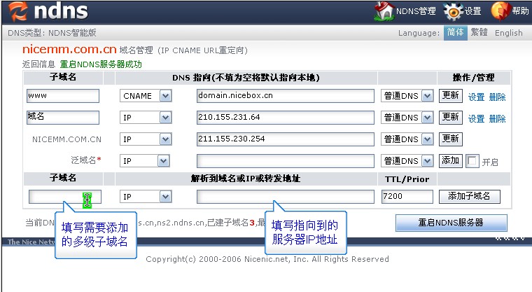 英文多子域名设置方法: